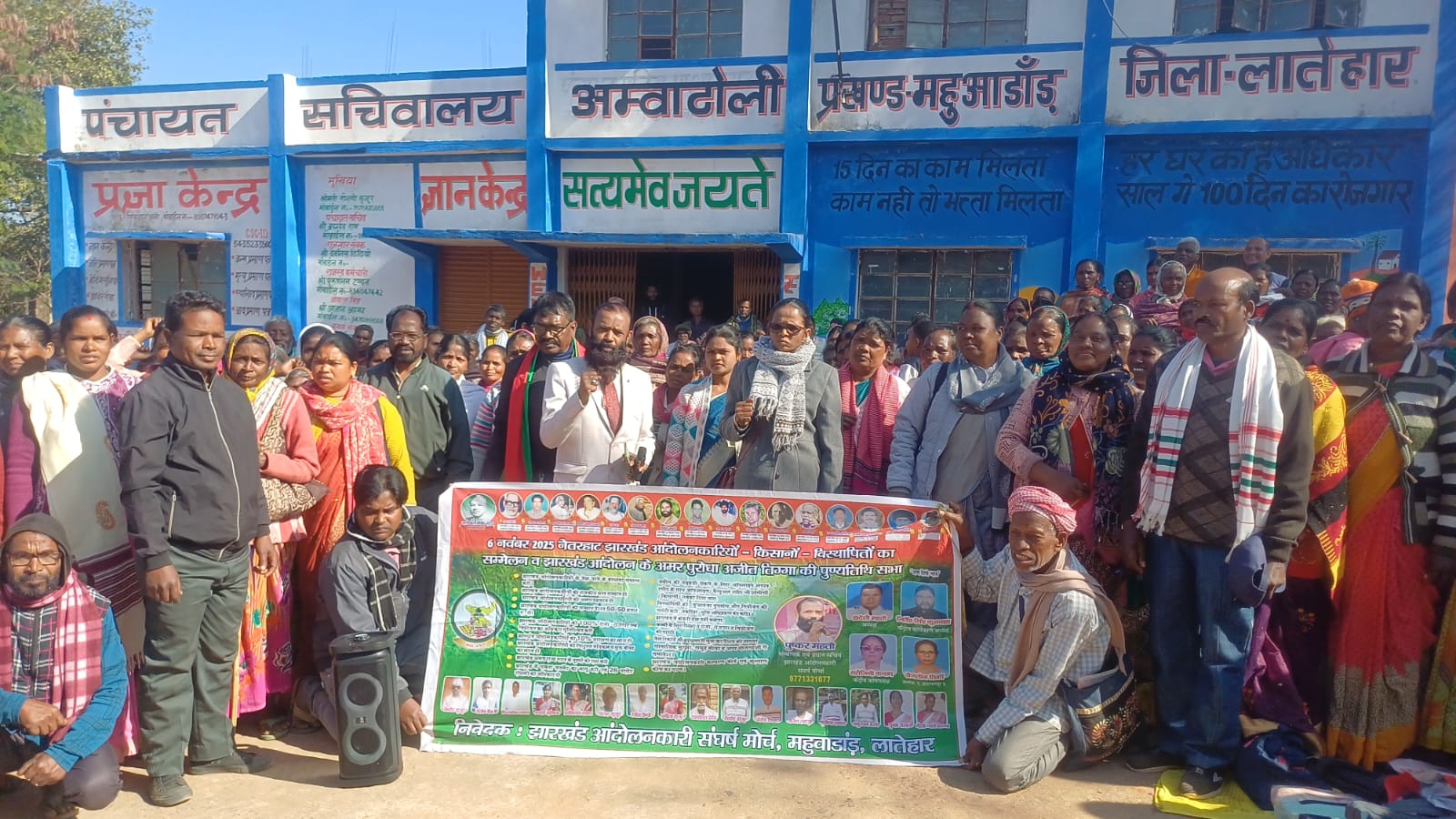 महुआडांड झारखंड आंदोलनकारी संघर्ष मोर्चा महुआडांड के तत्वावधान में पंचायत सचिवालय प्रांगण, अंबा टोली में झारखंड आंदोलनकारियों की विभिन्न मांगों को लेकर एक विशाल सभा का आयोजन किया गया। सभा में आंदोलनकारियों को राजकीय मान-सम्मान, अलग पहचान, उनके बच्चों के लिए रोज़ी–रोज़गार व नियोजन की गारंटी, जेल जाने की बाध्यता समाप्त करने, ₹50,000 सम्मान पेंशन, निःशुल्क चिकित्सा सुविधा एवं समूह बीमा का लाभ देने की मांग सरकार से की गई।सभा के मुख्य अतिथि पुष्कर महतो, संस्थापक प्रधान सचिव, झारखंड आंदोलनकारी संघर्ष मोर्चा, ने कहा कि झारखंड सरकार को गणतंत्र दिवस जैसे राष्ट्रीय पर्व पर आंदोलनकारियों को उनके संवैधानिक अधिकार दिलाने का संकल्प लेना चाहिए। उन्होंने कहा कि न्याय, सम्मान और स्वाभिमान के साथ जीने का अधिकार आंदोलनकारियों का संवैधानिक हक है। झारखंडियों, विस्थापितों और किसानों के संवैधानिक मूल्यों की रक्षा करना राज्य सरकार का दायित्व है।दक्षिणी छोटानागपुर प्रजामंडल की अध्यक्ष श्रीमती रोजलीन तिर्की ने कहा कि आंदोलनकारी अपनी एकता को बनाए रखें। एकजुट होकर ही वे बड़ा परिवर्तन ला सकते हैं, भ्रष्टाचार पर अंकुश लगा सकते हैं और सरकार को जनहित के मुद्दों पर झुकने को मजबूर कर सकते हैं।प्रभारी अंथन लकड़ा ने कहा कि झारखंड आंदोलनकारियों ने अपने संघर्ष और बलिदान से अलग राज्य का निर्माण कराया। अब राज्य सरकार की जिम्मेदारी है कि वह ‘माया–माटी’ और झारखंड के मूल मूल्यों को धरातल पर उतारे।पूर्व जिला परिषद सदस्य श्रीमती मनीना कुजूर ने कहा कि झारखंड आंदोलन के कारण ही राज्य और सरकार को सम्मान मिला है। इसलिए आंदोलनकारियों को अपने अधिकारों की रक्षा की लड़ाई और तेज करनी चाहिए कार्यक्रम की अध्यक्षता रंजीत टोप्पो ने की, जबकि स्वागत भाषण राजेश लकड़ा ने दिया। सभा में मंगा उरांव, अनिल मनोहर, रोशनी कुजूर मुखिया , शाहिद अहमद,केरकेट्टा, फिलमोन लकड़ा, आभा लकड़ा, विनोद कुजूर, जेरोम तिग्गा, गुनी देवी, बर्नाड मिंज, प्रमोद मिंज, निर्मल कुजूर, कलावती देवी, मार्टिन खलखो, बिमला लकड़ा, विनीता असुर सहित सैकड़ों आंदोलनकारी उपस्थित थे।