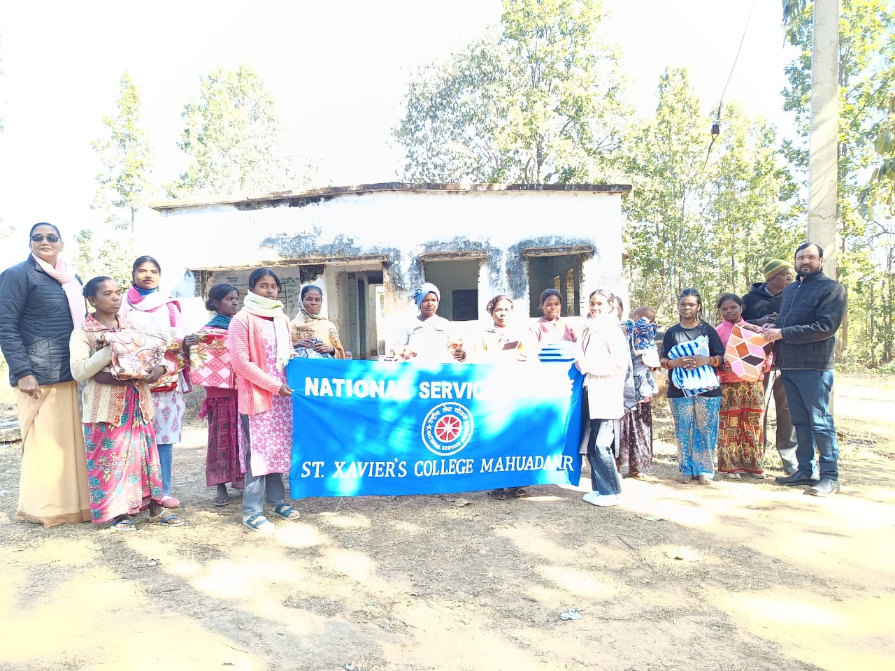 संत जेवियर्स कॉलेज महुआडांड़ की राष्ट्रीय सेवा योजना (एनएसएस) इकाई की ओर से आदिम जनजातियों के बीच कंबल वितरण अभियान का सफल आयोजन 14 जनवरी 2026 को किया गया। इस मानवीय पहल का शुभारंभ संत जेवियर्स कॉलेज महुआडांड़ के प्राचार्य डॉ. फादर एम. के. जोस ने किया। इस अवसर पर उपप्राचार्य सिस्टर चन्द्रोदया एवं एनएसएस कार्यक्रम समन्वयक सर विक्रम रजत डुंगडुंग की गरिमामयी उपस्थिति रही।इस अभियान में वनस्पति विज्ञान, भूगोल एवं गणित विभाग के छात्रों ने स्वयंसेवक के रूप में सक्रिय भागीदारी निभाई। कॉलेज की टीम ने महुआडांड़ प्रखंड के सोहर, कटहलटोली, दूधरवा, बांसटोली, चाहेर और कोटराकोना गांवों में जाकर गरीब एवं जरूरतमंद आदिम जनजातीय परिवारों के बीच कंबलों का वितरण किया।विशेष रूप से असुर, कोरवा, नगेसिया और बिरजिया जैसी आदिम जनजातियों से आने वाले बुजुर्गों, बीमारों और असहाय लोगों को इस भीषण ठंड में कंबल प्रदान कर राहत पहुंचाई गई। स्थानीय ग्रामीणों और स्वयंसेवकों के सहयोग से यह अभियान अत्यंत सुव्यवस्थित एवं सफल रहा।
