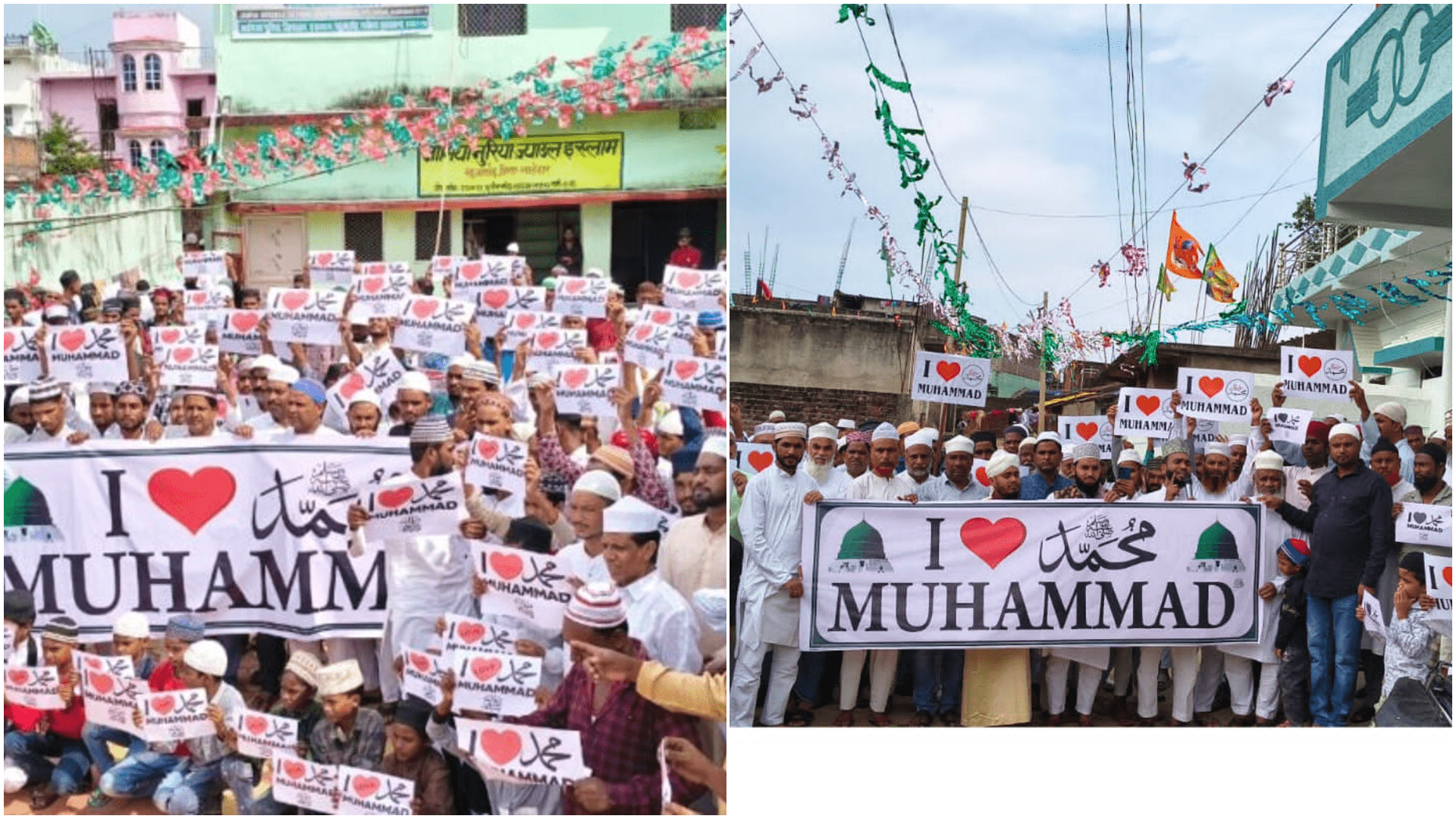 - प्रदर्शनकारियों ने “आई लव मुहम्मद ﷺ” लिखी तख्तियां और बैनर उठाए।