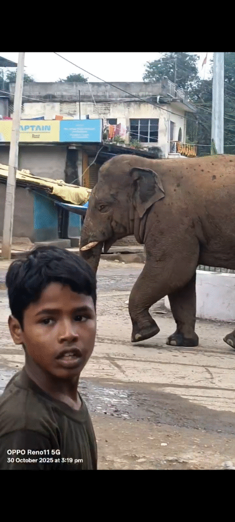 🐘 हाथी का दिनभर का ‘सफर’ — जंगली मेहमान बना चर्चा का विषय